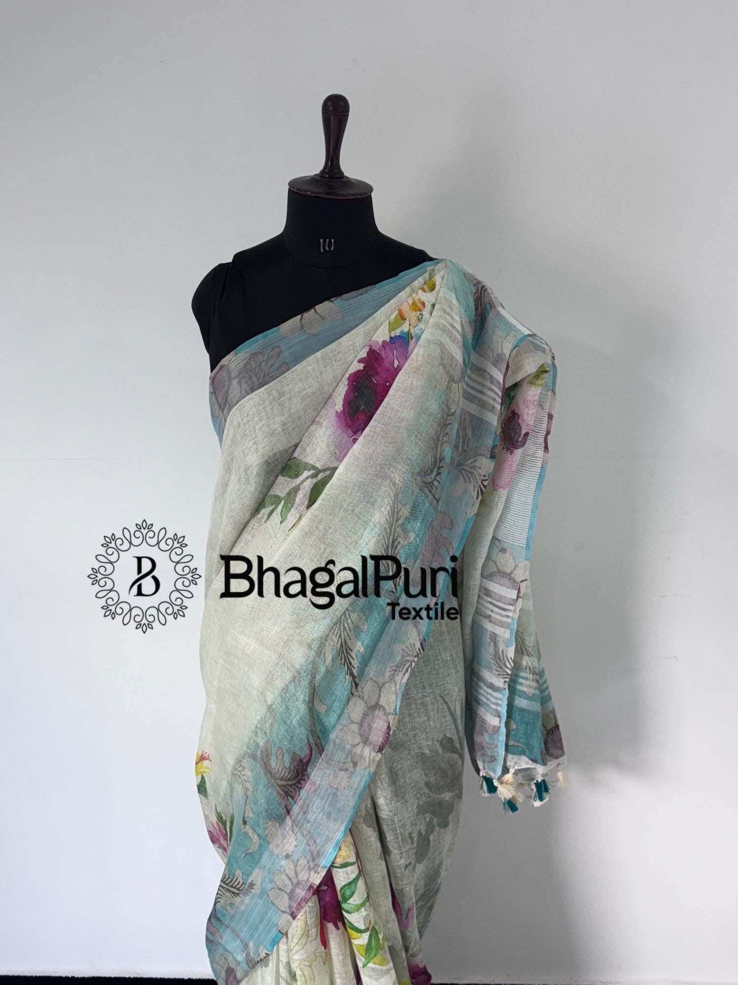 Blossom Bloom Linen Digital Saree (Search code-1090)