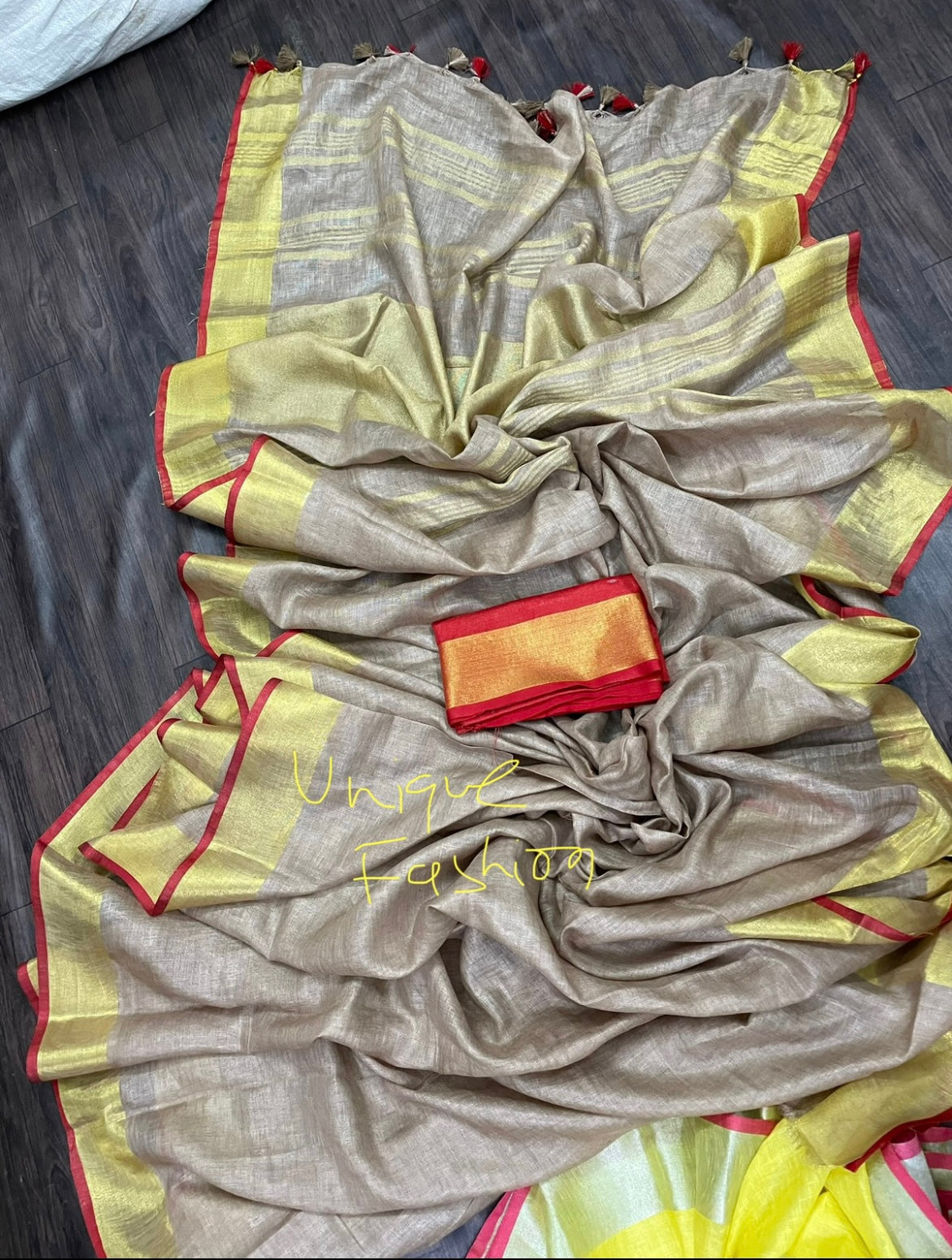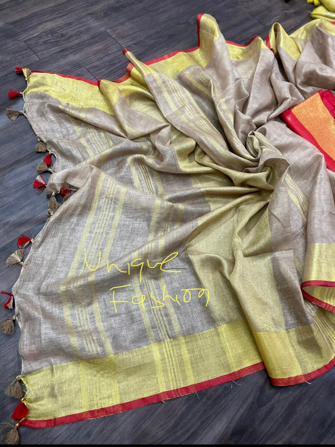 Khaki Linen Saree(Search Code-10117)