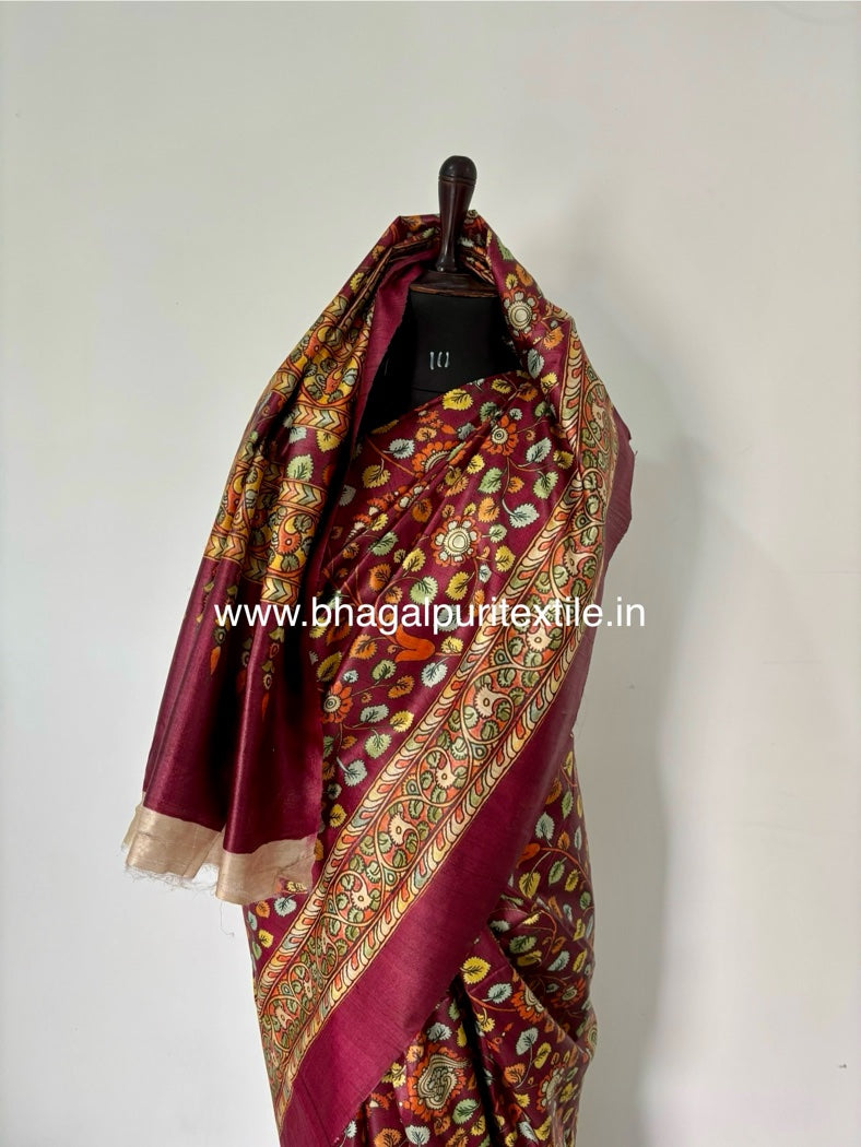 Noor-e-Tussar Digital Print Desi Silk Saree (Search code- 1074)