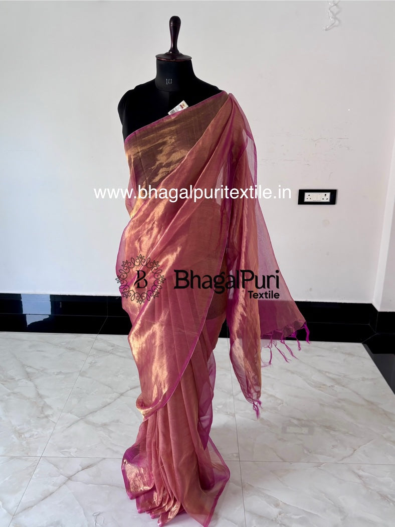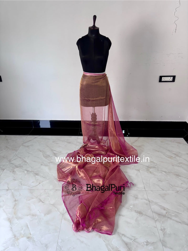 TissueRose Tissue Silk Saree, designed for the modern woman who appreciates traditional luxury. Crafted from premium tissue silk, this saree features a delicate blush pink tone with a soft shimmer that enhances its graceful drape.