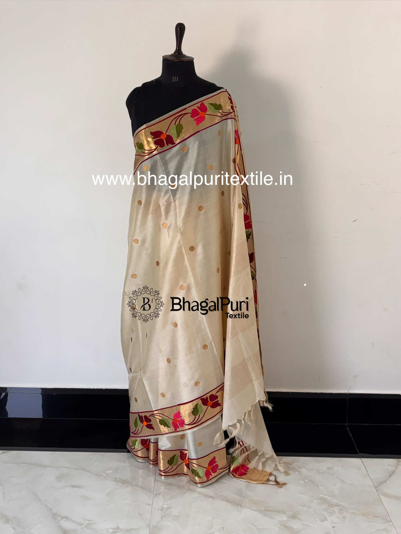 Floral Bloom Tussar Silk Saree with Golden Polka Details (Search Code-10163)